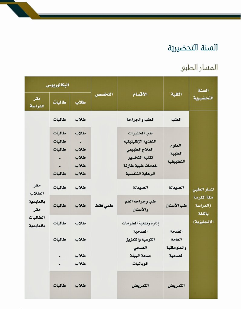 مكة المكرمة المقر الرئيسي. المقرات التي يتم القبول عليها للدراسة بالجامعة. مسار الهندسة والحاسب اﻵلي المسار العلمي ويشمل التخصصات التالية. الخطط الدراسية لمسارات السنة الأولى المشتركة مسار الكليات الصحية.